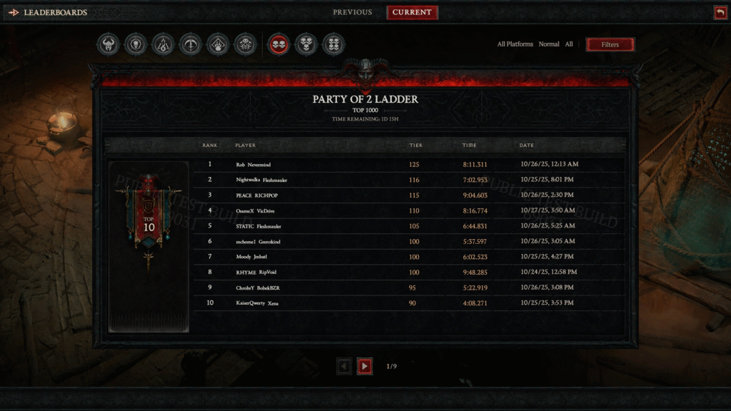 Leaderboards return to Diablo 4 for the first time since Season 6, providing a competitive ranking system for players. They will track the top 1000 players in each bracket, displaying Rank, Player Name, Tier Completed, Time, and Date of Completion.